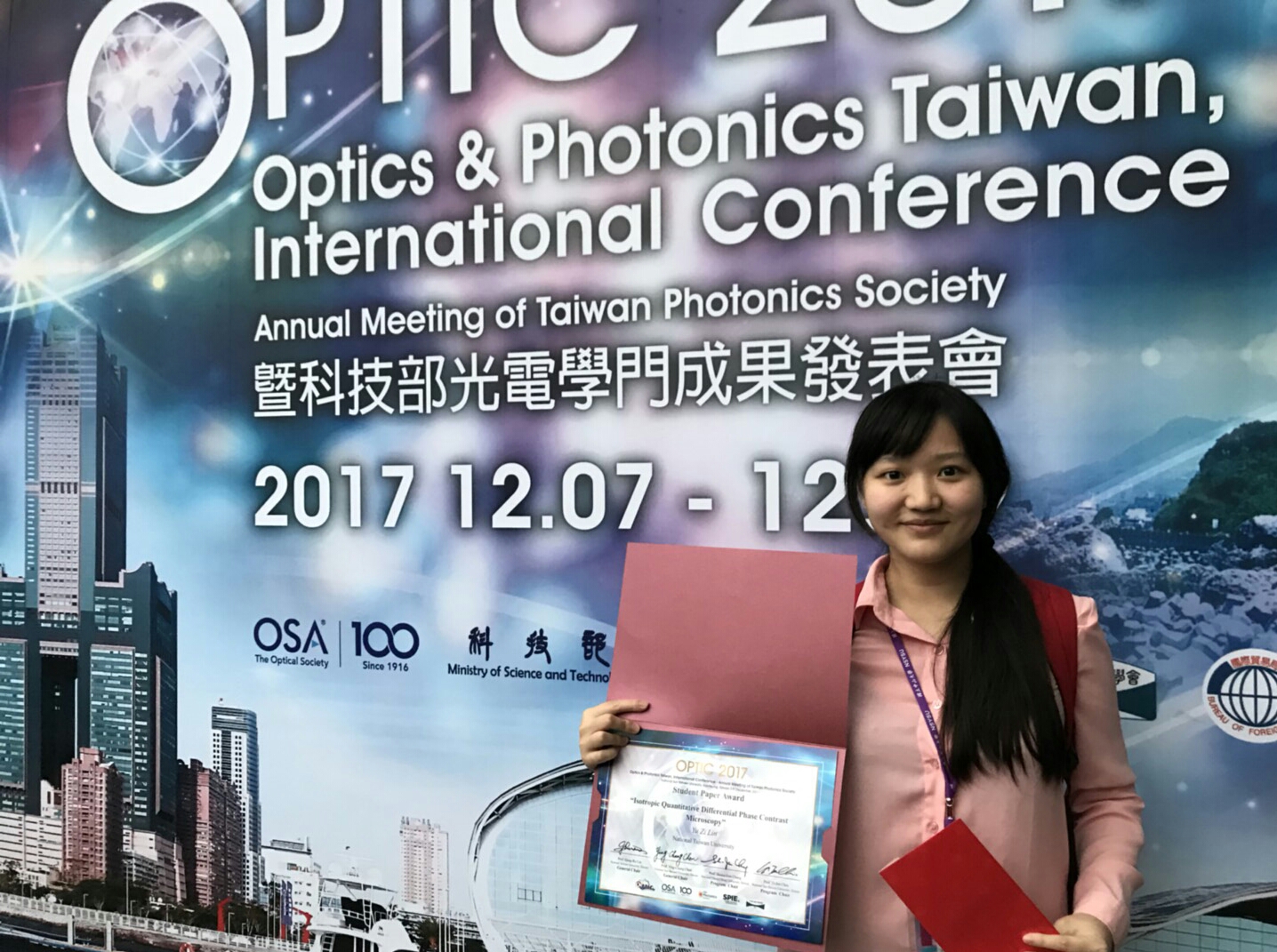 Student Yu-Tzu Lin Chien won the OPTIC 2017 Best Paper Award